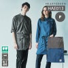 腰ひもを前で結ぶユニセックスなエプロンは、シャツと同じダンガリー調素材。ポケットやスリットなど、機能的なディテールを装備しています。