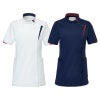 ●前屈みになった際のきゅうくつ感を解消する襟先のカッティング。