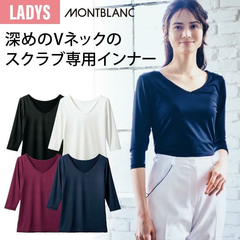 スクラブと重ねてもインナーが見えない深めのVネック。