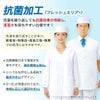 清潔感あふれる機能性の高い女性調理白衣。外側の両腰にはポケット付き。