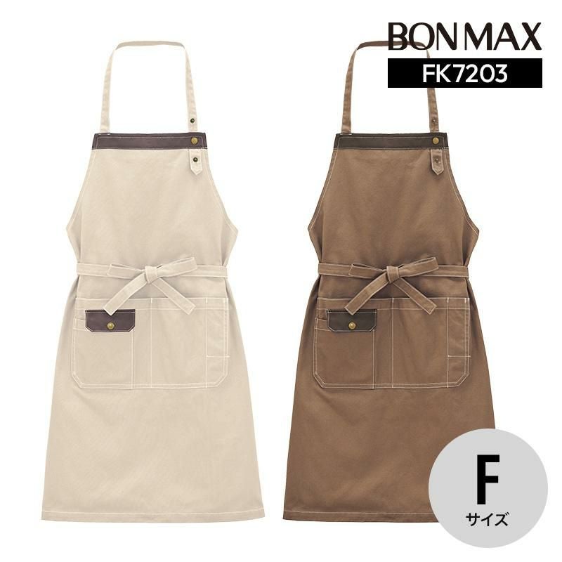 異素材の配色デザインがアクセントを添える、ナチュラルな綿100%素材の胸当てエプロン。