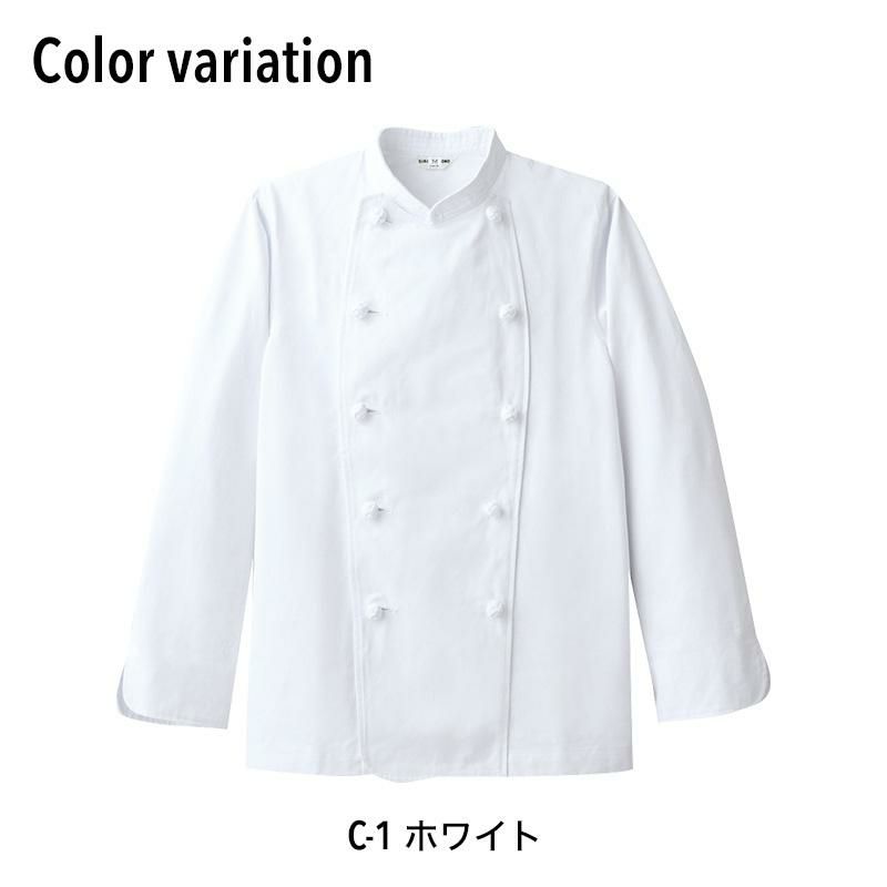 すっきりシンプルなシャツタイプのコックコートです。襟はスタンドタイプになってます。