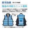ベストの前面、背面、衿元にある冷却ユニットに氷で冷やした冷水が流れ渡り、瞬時に効果的に体を冷却。