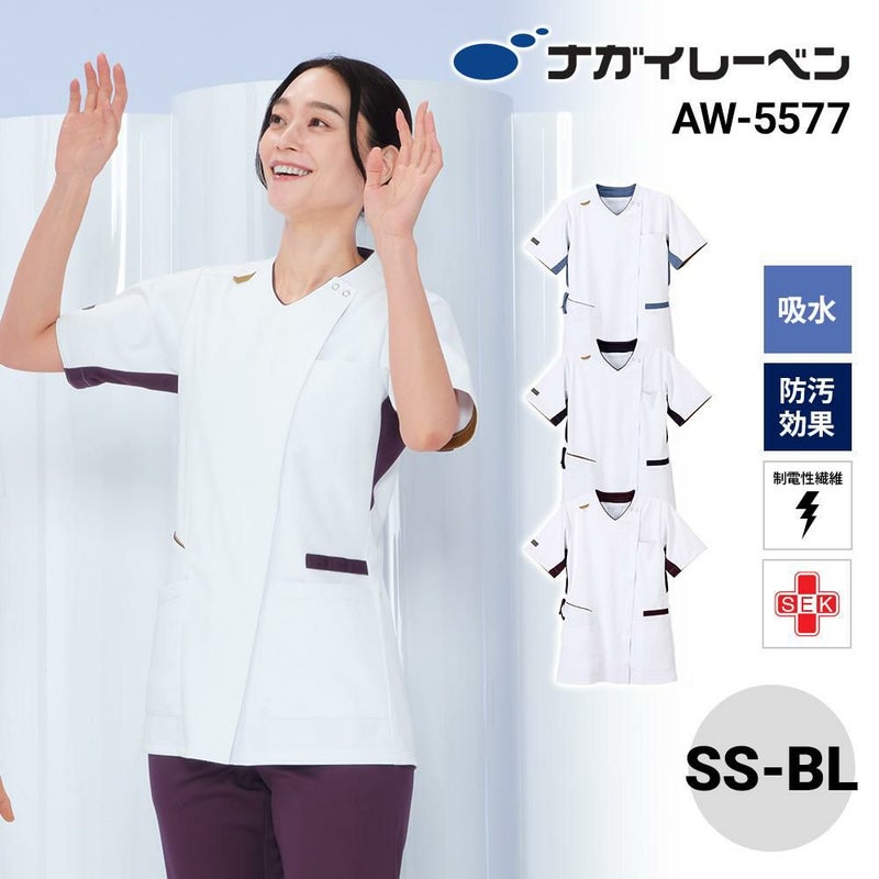 様々な機能をちりばめたフロントファスナー開きの男女兼用ホワイトスクラブです。