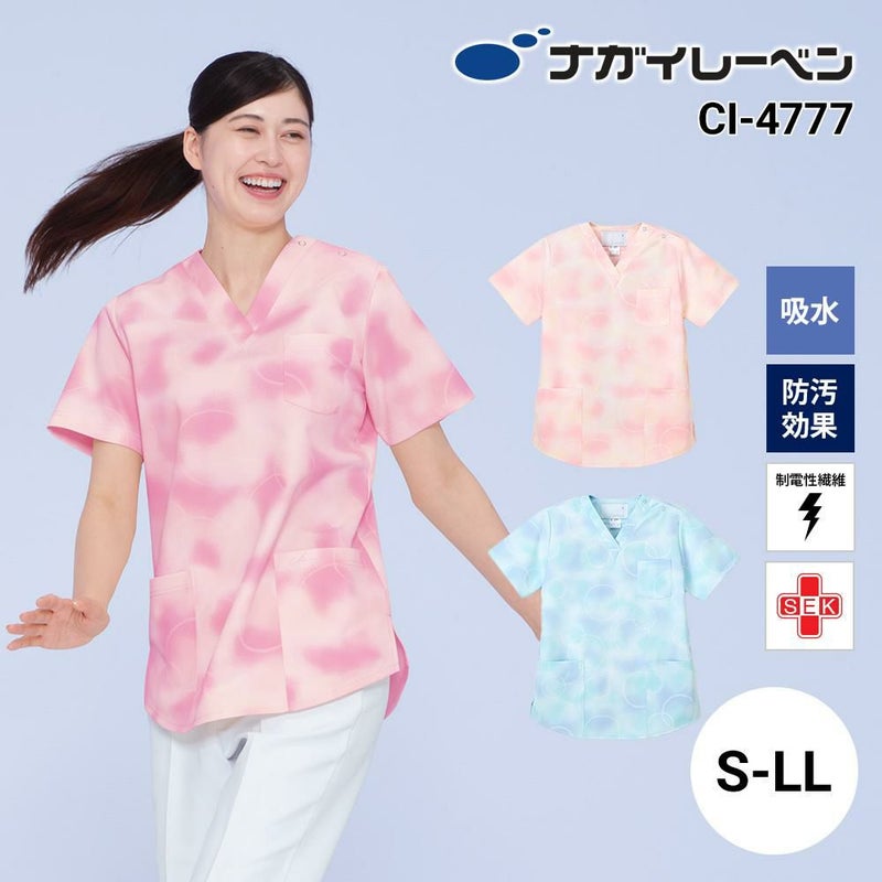 明るく楽しくハツラツとして、ゆったりシルエットのスクラブです。