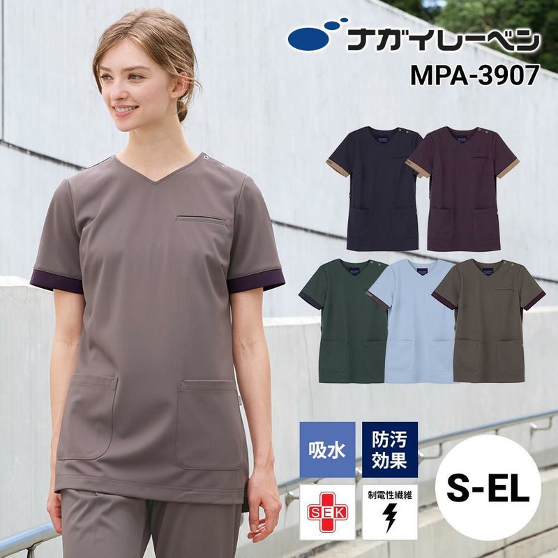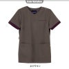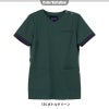 袖口の配色パーツがアイキャッチになるレディススクラブ。