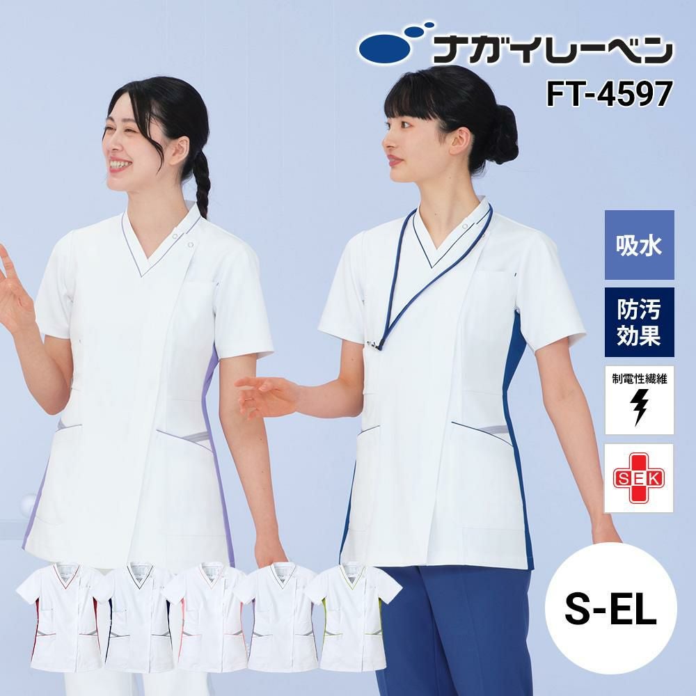 女子横掛 半袖 ケーシー 医療[KES5172/ナガイレーベン](S-LL)