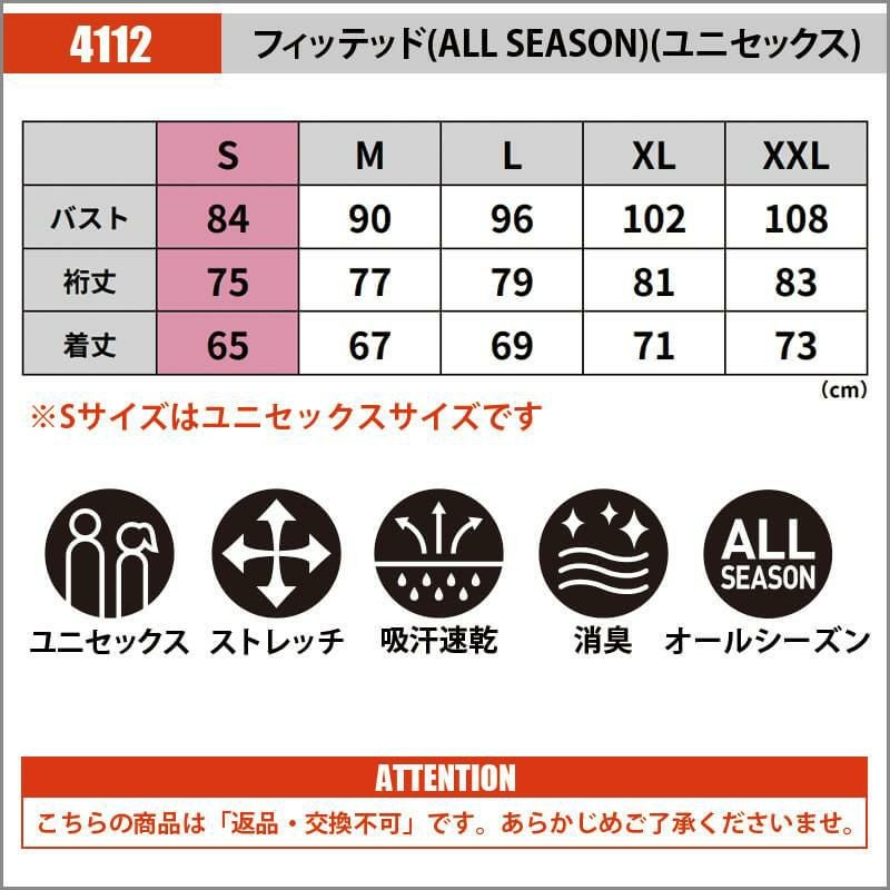 他の画像を見る フィッテッド(ALL SEASON)(ユニセックス)[バートル/4112] S-XXL 希望小売価格 ¥ 2,090 特価 ¥ 980 税込 カートに入れる お気に入りに登録する (0)