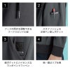 ■複合繊維を採用し、伸長率タテ約34%ヨコ約46% 、伸長回復率(1時間後)ヨコ約91%を測定した適度な動き易さと、ポリウレタン糸使用素材では再現出来ない肘抜け感を軽減したスタイリングを実現します。