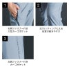 経編のニット素材を採用。織物素材では実現困難なニット素材特有の着心地の良さと、高い抗スナッグ性(4級)、抗ピリング性(5級)や破裂強さ(404kPa) 等、経編構造特有の生地の強度を併せ持ち、優れたハリコシ感の素材感が着用時のシワを軽減します。