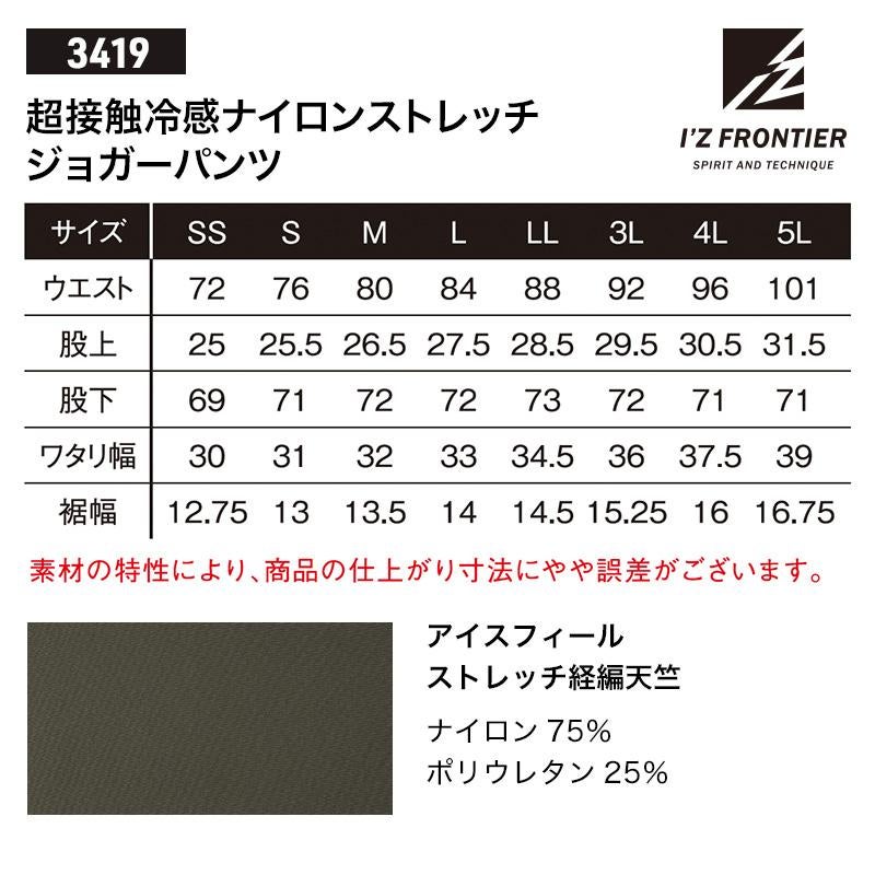 接触冷感ナイロンストレッチジョガーパンツ[アイズフロンティア/3413] SS-5L