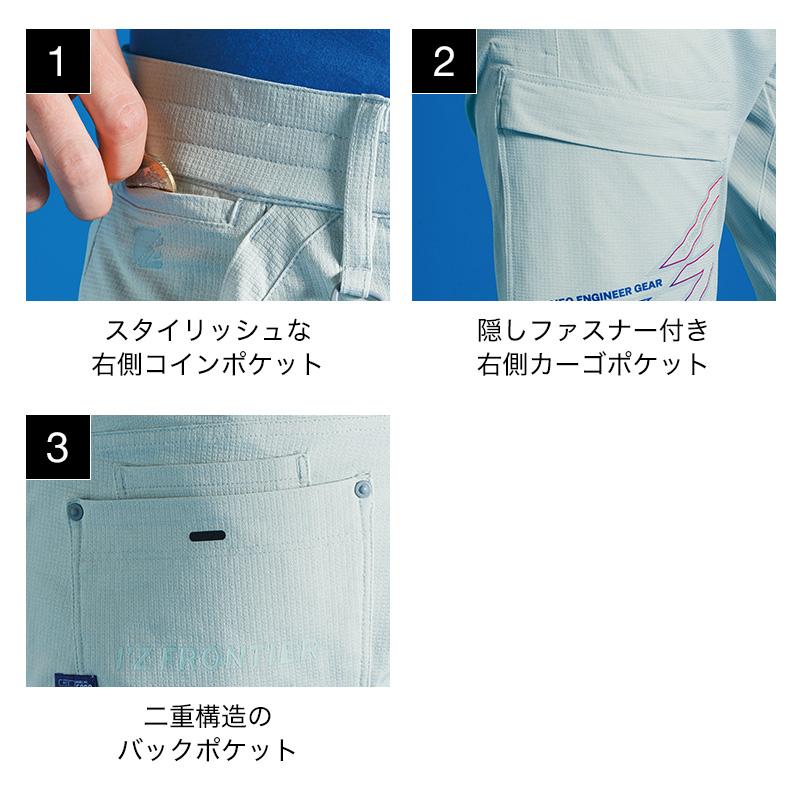 アイズフロンティア5304は、作業着に革命をもたらすハーフパンツです。 ワッフル編みのパウダーエアーストレッチ素材で、UVカットと通気性を実現。 春夏の作業を快適にサポートします。