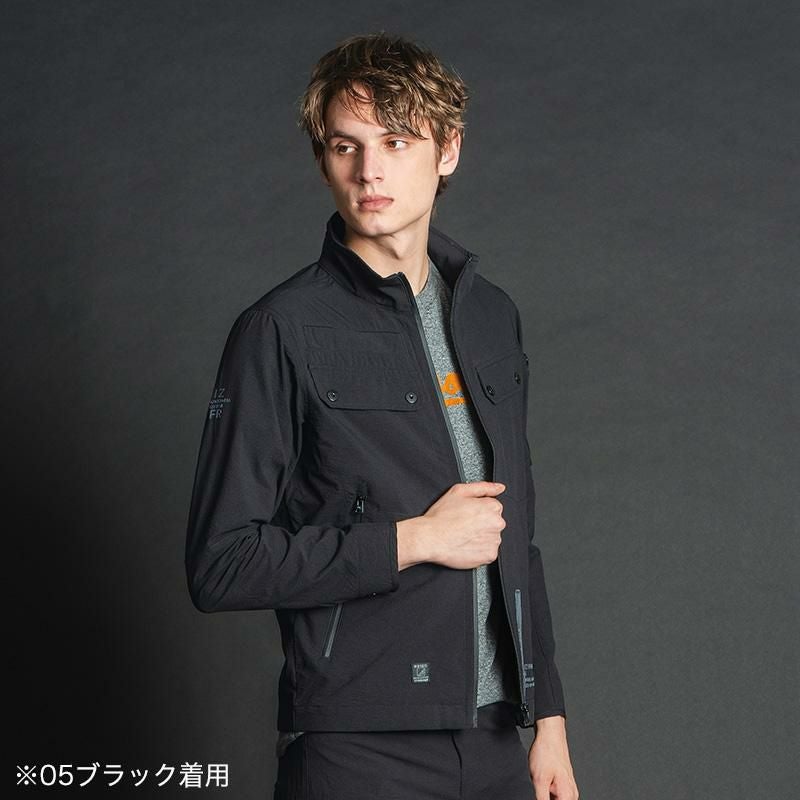 JIS T8118規格適合の「静電気帯電防止作業服」。全方位に伸びるストレッチ性や柔軟性を持つ生地を使用しており、ワークシーンで活躍します!