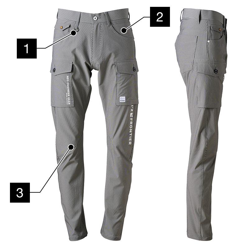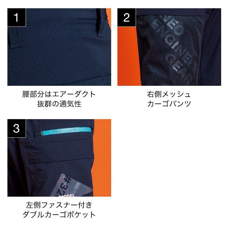 スリムフィットなメインカーゴとゆったりと穿ける適度なリラックスカーゴ2型のパンツ展開と耐久性とストレッチ性に優れるヘビーCVC素材がハードなワークシーンのパフォーマンスを最大化します。