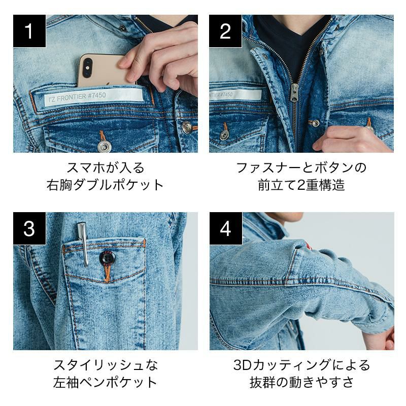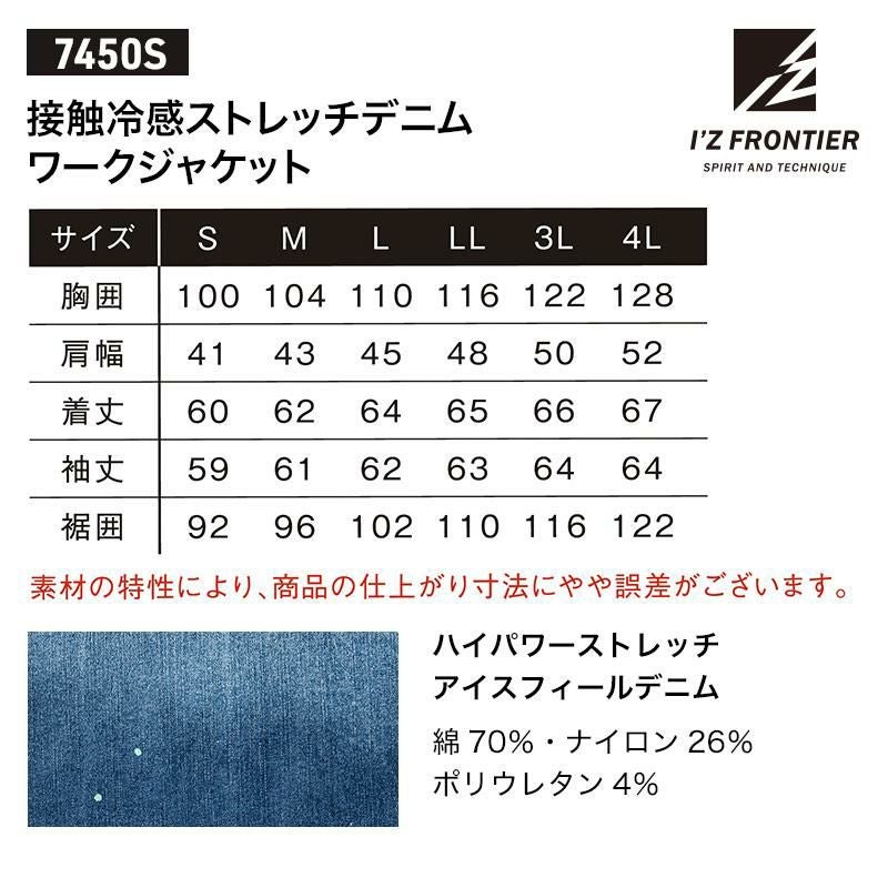 接触冷感ストレッチデニムワークジャケット[アイズフロンティア/7450S] S-4L